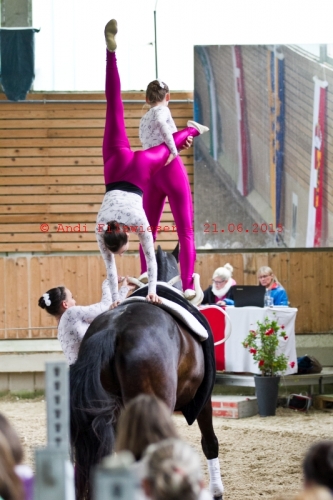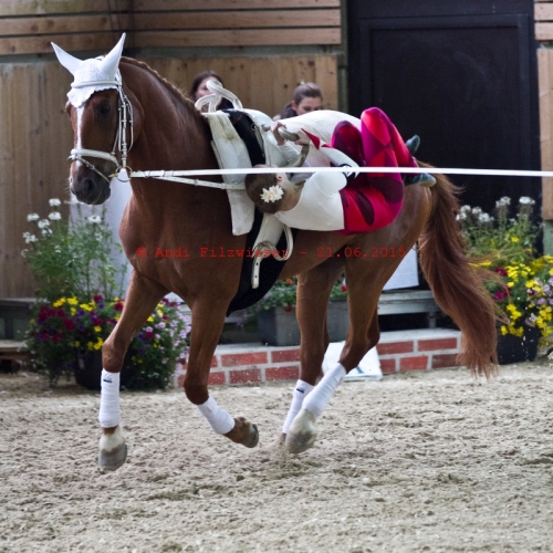 Neben unserer S-Junioren Gruppe nahm auch die A-Gruppe teil. Nach einer kleinen „Wildpferdeinlage“ von Borys und ein paar Unsicherheiten in der Pflicht zeigten die Mädels eine solide Kür.